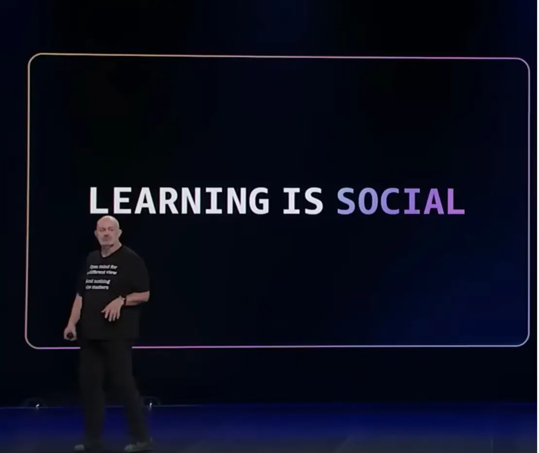 学習とは社会的なプロセスであり、単に知識を得るだけではなく、人との対話や交流の中で深まっていくものだという意味が込められています。