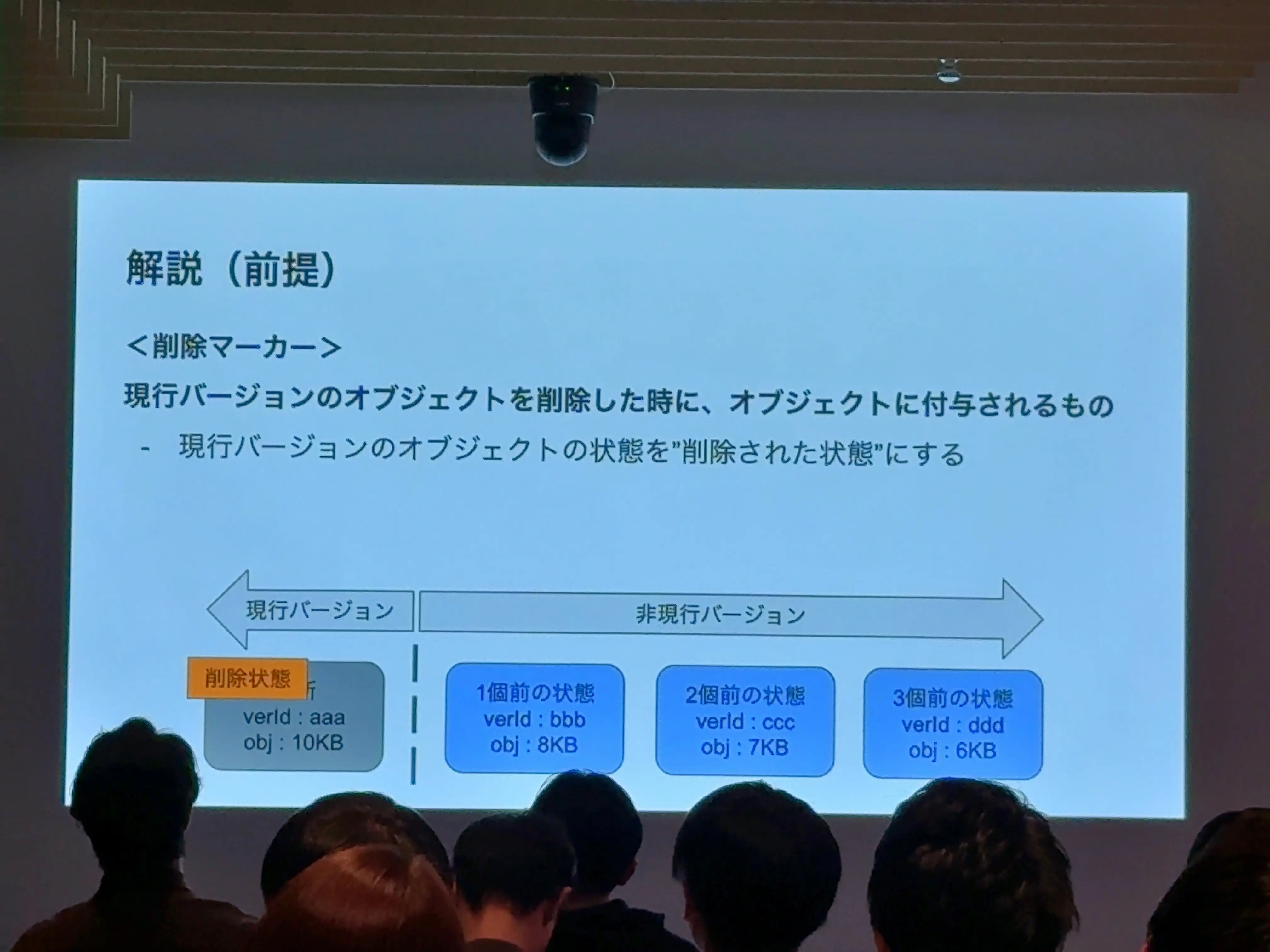 ・現行バージョンのオブジェクト:削除マーカーが付与されるだけ(実際には削除されていない)