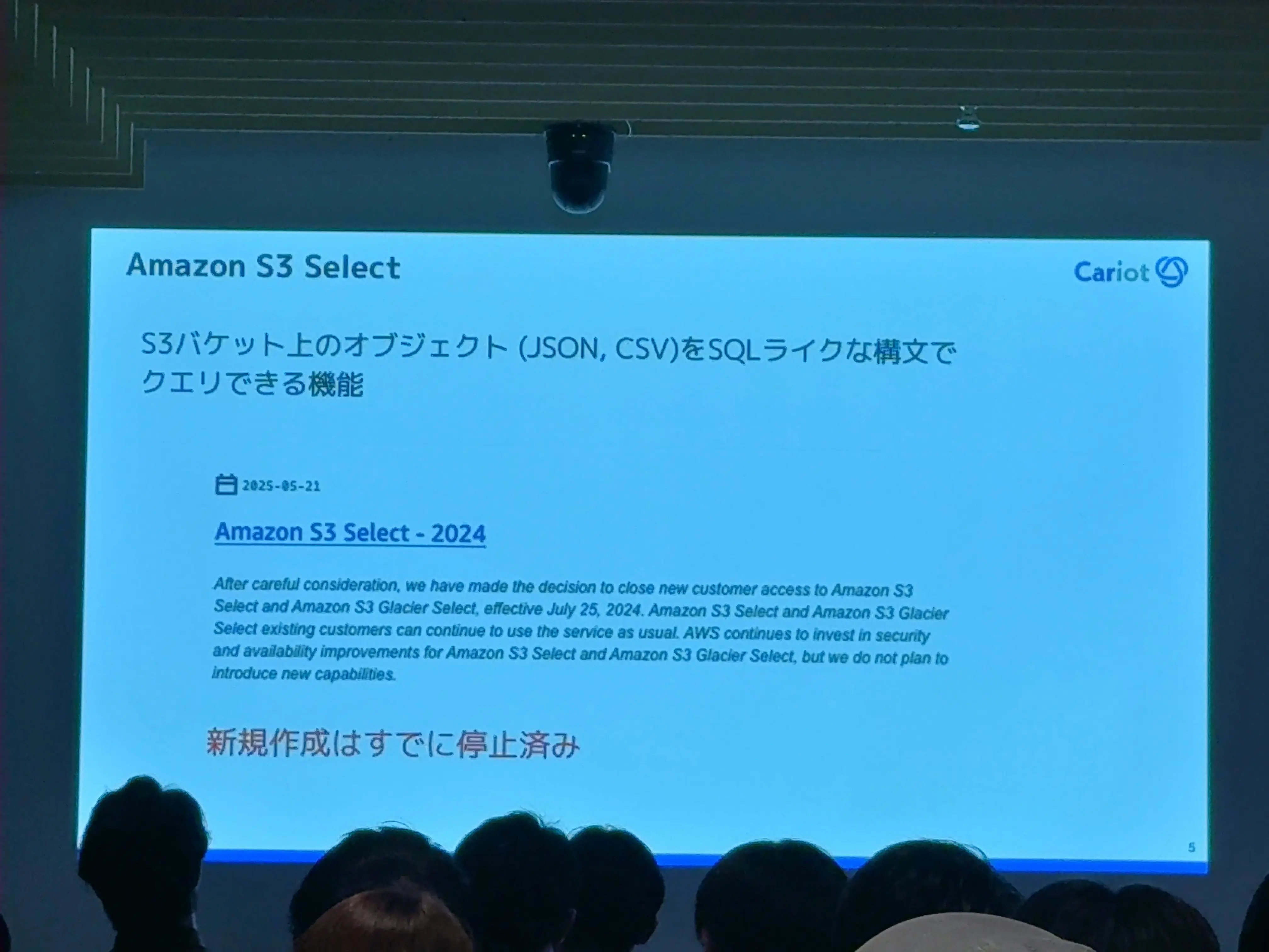 S3 SelectとKinesis Data Analytics for SQL アプリケーションを使っていたがそれぞれサービス終了がアナウンスされている。