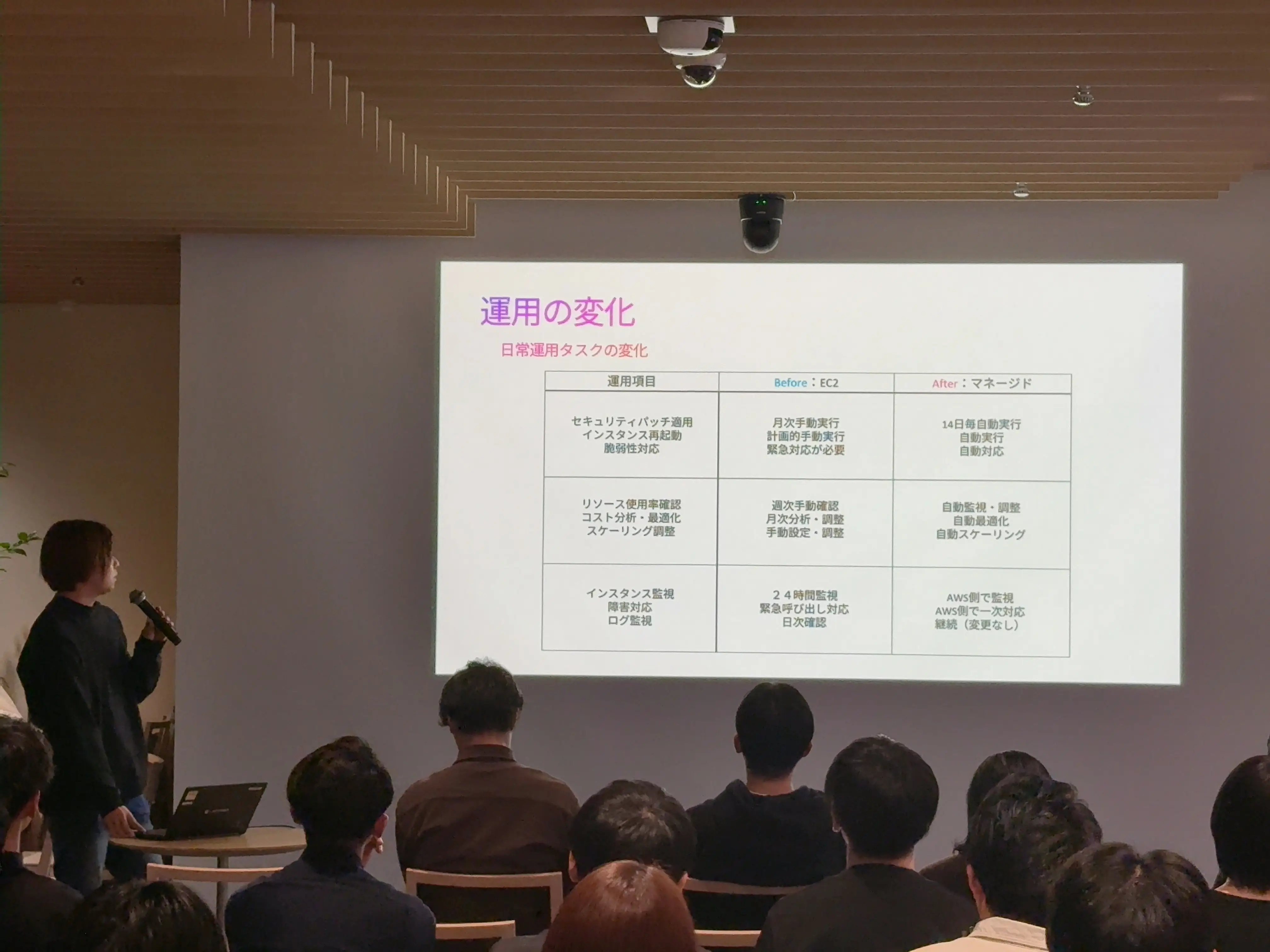 EC2とマネージドにおける運用項目の比較。